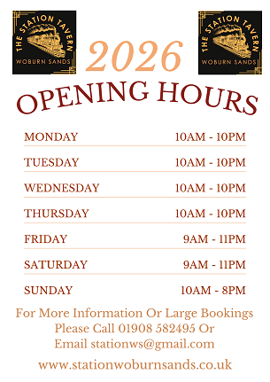 The Brewer Family Have Been Have Been Serving Woburn Sands & Beyond For Over 35 Years. Now Open Everyday From 9am (10am Sunday) Serving 'The Famous Station Breakfast' Now More Popular Than Ever, We Also Have Fantastic Menus For Lunch & Dinner. We Have Lots Seating Inside & Out, With Covered & Heated Areas & A Large Decking Area Round The Back Of The Pub.